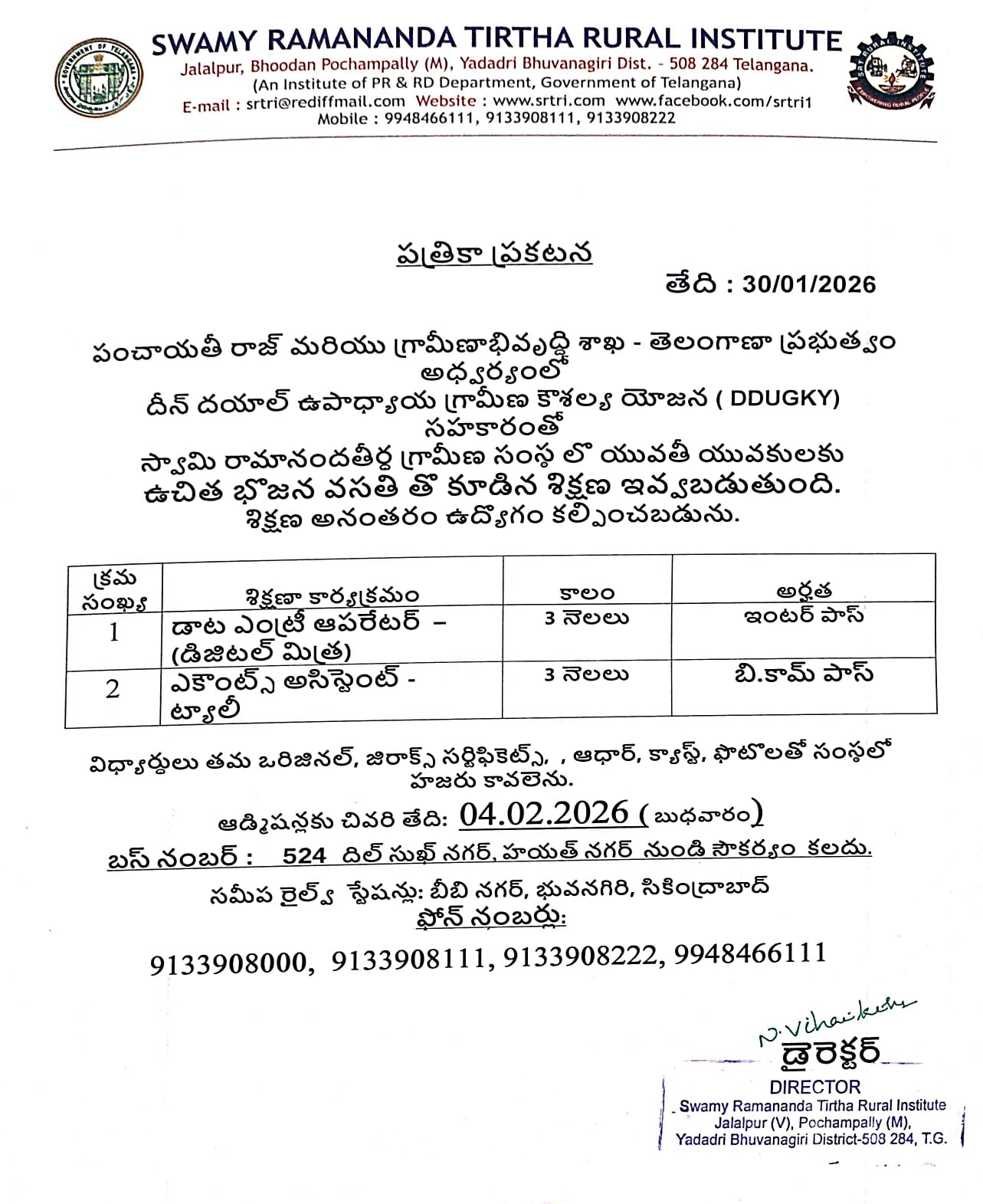 Notification for DDU GKY Training Programmes Dt.30-01-2026