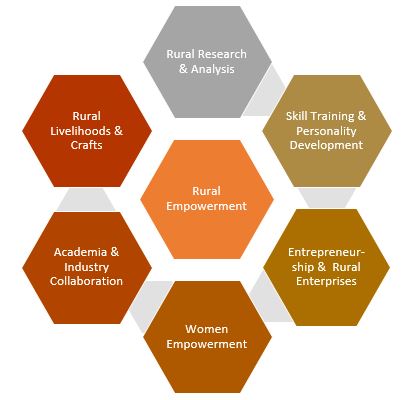 The Institute is in the process of re-engineering itself into a center of excellence for rural employment & enterprise promotion through proper blend of critical activities viz. research, education, training, extension, networking, consultancy, etc. India being the youngest country across the globe, the Government and others institutional mechanism need to gear-up to grab the emerging opportunities leveraging the demographic dividend. There is a strong need to create an innovative education and training platform to match the emerging opportunities in industry and rural economy. It is proposed to re-structure the eco-system of the Institute in terms of six inter-connected centers of execution as proposed below.